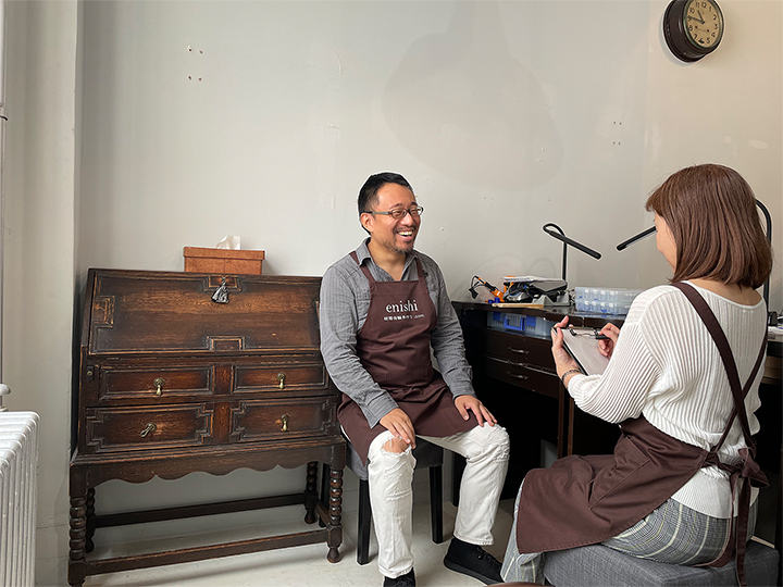 - 遠距離のカップルは真ん中あたりの名古屋の工房にしたり、大阪へ遊びに行くついでに制作に来られたりとお客様のスケジュールに合わせて3店舗から選ぶことができます。将来転勤などがあってもメンテナンスなども安心です。